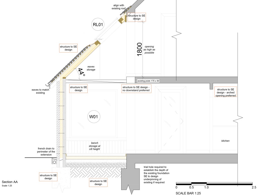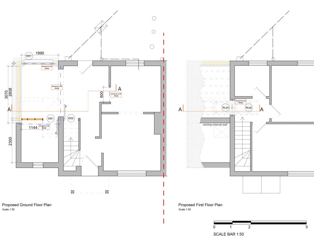 A small extension to a semi-detached two storey dwelling, to meet the changing needs of the client. The project improves functionality of the ground floor by creating an enlarged open plan living room, kitchen and dining room with ground floor wc. The proposed design is in keeping with the materiality of the existing property, extending the existing cat-slide roof to infill to the rear and form the desired space.