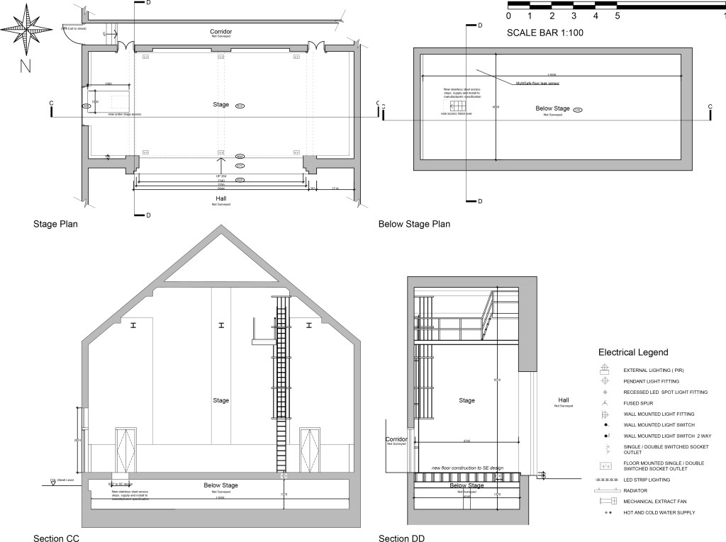 The project included internal alterations throughout the Village Hall, as part of a Gonvernment Funded regeneration project which included; extension to a kitchenette to create a small kitchen space and creation of a new cafe, structural repairs to the main stage and new floor finish, relocation of DDA toilet facilities, and redecoration throughout.