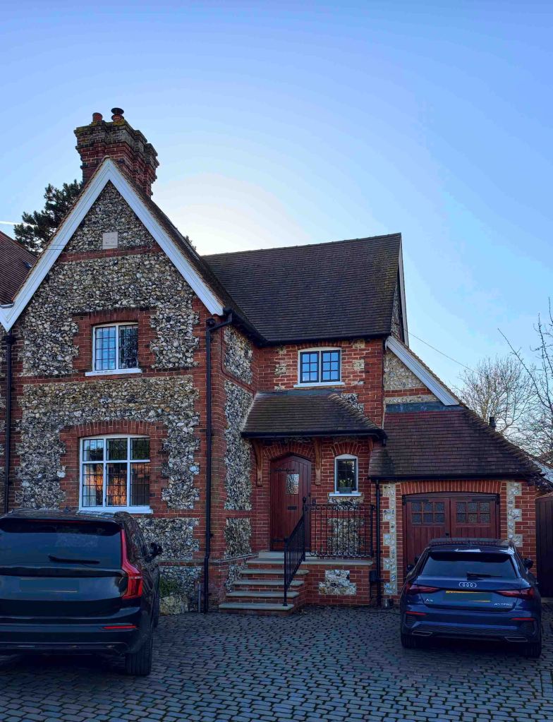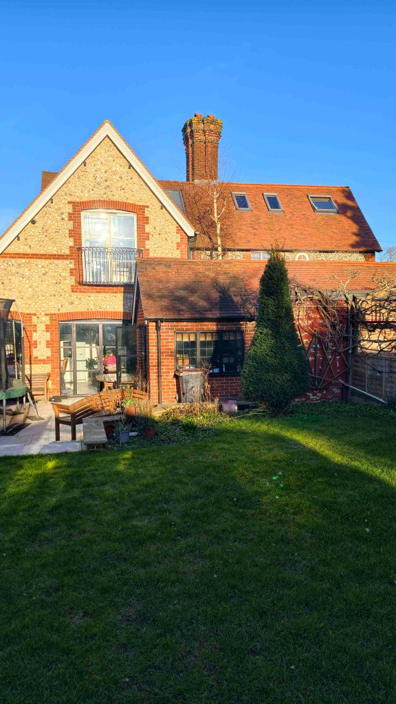 The project extends and renovates a locally Listed semi-detached two-storey dwelling set within a Conservation Area, through a side and rear extension and internal reordering. The existing material pallette of the cottage is continued through, incorportation flint and brick quioning and metal framed windows.